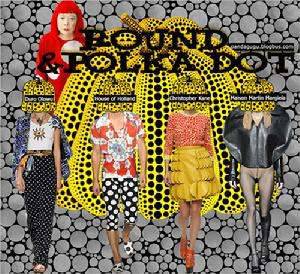 草间在相当早的创作时期就发展出了自己的特色,她善用高彩度对比的圆点花纹加上镜子,大量包覆各种物体的表面,如墙壁、地板、画布、家里会出现的物品。她自己的打扮往往也与作品有很高的同质性,并以短上衣和非常强烈的眼影妆闻名。草间曾说明这些视觉特色都来自于她的幻觉,她认为这些点组成了一面无限大的补捉网,代表了她的生命。