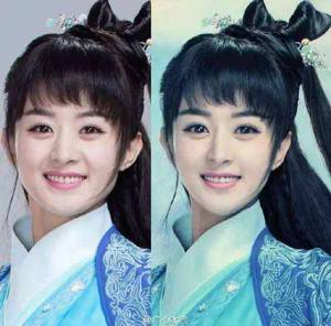 再看之前《青云志》的官宣P图对比,厚厚的刘海减去了赵丽颖不少灵动气息,p后将赵丽颖可爱的包子脸修成了网红风的锥子脸。不仅并未为赵丽颖添半分辨识度,反而使她五官的优点被缩小了。