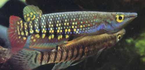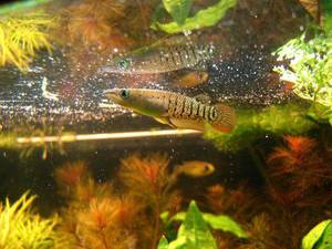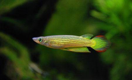 下图为 线纹单唇鳉 Aplocheilus lineatus,俗称 线纹鰕鳉