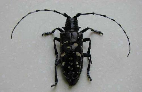 从你的图片上看,这个是天牛,天牛是植物害虫,对人没有什么危害,它有趋光性,应该是被你家晚上的灯光吸引来的。天牛成虫体呈长圆筒形,背部略扁;触角着生在额的突起(称触角基瘤)上,具有使触角自由转动和向后覆盖于虫体背上的功能。爪通常呈单齿式,少数呈附齿式。
