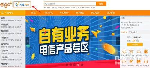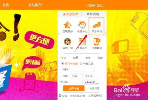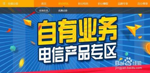 首先在电脑上打开电信官网,登录以后我们会在页面的右侧看到"积分商城"选项,如图;点击该项就跳转到了积分兑换页面,见下图...