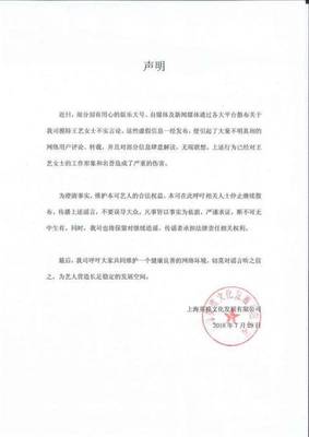 7月29日,英模针对旗下模特王艺出轨纪凌尘的传闻发表回应声明,称近日各大平台散播的传闻均为不实,已对王艺造成严重损失,呼吁相关人员停止散播谣言,将保留追究造谣者法律责任的权利。
