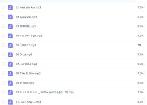 1辑 - SuperJunior 05 1、Miracle 2、Twins(Knock Out) 3、You Are The One 4、Rock This House 5、Way For Love 6、So I 7、Over 8、Keep In Touch 9、L.O.V.E 10、Believe 11、Twins(Knock Out)Inst. 单曲 - U 1、U 2、Endless Moment 3、Lovely Day SuperJunior - T First Single 1、来过倒 2、首班车/早班车 3、没有像我这样的人 4、来过倒(Instrumental) 5、首班车(I090801日本SuperJuniorPremiumLive-shiinig star