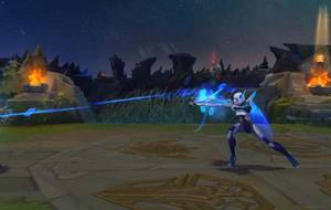 Q技能效果展示,内外圈的视觉分别很出色,斧头挥动后地下会有外圈Q留下的痕迹,展示出斧子的锋利程度;W技能释放时会有斧头握姿的改变,背身握斧向前挥砍。