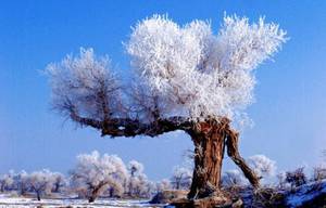 在额济纳旗博物馆、库车千佛洞和敦煌铁匠沟的第三纪古新世地层中部发现了胡杨的化石,算起来至少也有6500万年的历史了。《后汉书·西域传》和《水经注》都记载着额济纳旗及塔里木盆地有胡桐(梧桐),也就是胡杨。额济纳旗人称之为“沙漠英雄树”,维吾尔语称胡杨为托克拉克,意为“最美丽的树”。由于它具有惊人的抗干旱、御风沙、耐盐碱的能力,能顽强地生存繁衍于沙漠之中,因而被人们赞誉为“沙漠英雄树”。人们夸赞胡杨巨大的生命力是“三个一千年”,即活着一千年不死,死后一千年不倒,倒后一千年不烂。