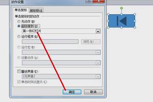 5、先选择“超链接到”,点击下面的“下一张幻灯片”,之后会弹出关于所有的超链接菜单设置项,如下图所示,在这里选择链接到“第一张幻灯片”,选择好后点击右下方的确定按钮。