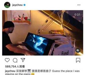 周杰伦在个人社交账号上晒出弹钢琴的视频一段,并附文:''深夜钢琴,猜猜是哪首曲子'',并非常自觉地完成了翻译:Guess the piece I was playing on the piano。