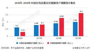 苏宁金融研究院的数据显示,2019年,网红经济市场规模超过2500亿元。在线直播和短视频用户规模也持续攀升,其中短视频用户规模上升得更快。2019年,中国在线直播用户与短视频用户市场规模分别达到了5.04亿人和8.20亿人。
