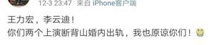 与王力宏的绯闻事件让李云迪沉寂了一段,两人不再同框不再公开联系对方也不提及对方。后来又爆出当街小便的丑闻,李云迪又被骂上热搜,还被一些网友称为“李莲花”,并指责春节“找力宏”的罗生门事件也是李云迪为了炒作策划的,说的好像李云迪是春晚导演一样。