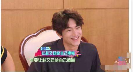 而之前林更新做的诱导也是相当的有小心机,坐座位的时候借着自己一是吃青菜过敏,二又说自己要吃两个桌子上的菜,然后先吃了点东西,吃的时候故意弄到了嘴巴上,再然后借着说话的时候总是往赵又廷方向看,没想到赵又廷看到了直接用手擦去了。