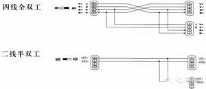 4)简易接法。除第3项说的,两公头2脚和3脚按需连接及屏蔽线连接同样外,其它各公头4脚与6脚短接,7脚与8脚短接,无需相连。总共只需在两公头间用三根线相连接。