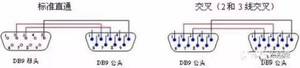 a.用于两设备间通信的,两公头的2和3交叉对接。其余对号连接,屏蔽线与编号5脚连接。