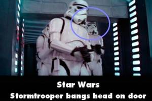 1.星球大战4:新希望星战电影已经被全世界的铁杆影迷反复审查。自然,他们肯定不会错过沉重的冲锋队士兵(或白人士兵)击中门框的场景。在《星4》 韩和卢克偷藏在死星里的冲锋队套装的场景中,你可以清楚地看到一名冲锋队士兵撞上了一扇还没有完全打开的门。由于预算限制,冲锋队的服装非常简陋。一名冲锋队士兵撞到了门框。