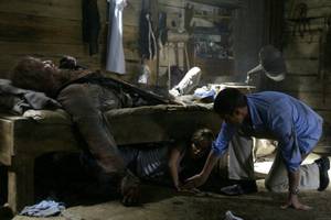 美国CULT级恐怖片《致命弯道》(Wrong Turn)系列,并不像《电锯惊魂》那样,披着悬疑恐怖的壳子,藏着人性沉沦、善恶有报的内涵,而是像《惊声尖笑》、《隔山有耳》、《惊心食人族》、《养鬼吃人》这类,主要依靠血腥、暴力、变态的视觉恐怖吸引和刺激观众。