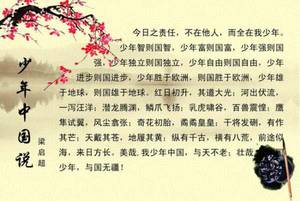故今日之责任,不在他人,而全在我少年。少年智则国智,少年富则国富,少年强则国强,少年独立则国独立,少年自由则国自由,少年进步则国进步,少年胜于欧洲,则国胜于欧洲,少年雄于地球,则国雄于地球。