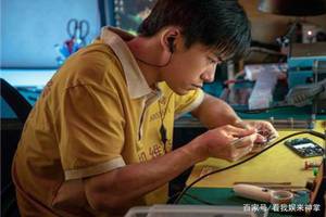 所以在这部电影里面,易烊千玺作为男主角饰演的也是一个小小的,在深圳奋斗的年轻人的缩影。一开始他只是开了一家手机维修公司,穿着黄色的衣服,背面印着手机维修的联系电话,可以说一开始是比较心酸的一个创业过程,那时候他没有太多的资金,也没有什么能够发家致富的好方法。