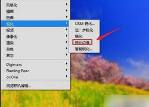 2、点击锐化选项之后,在右侧会出现一个选项框,在其下拉选项列表里找到锐化边缘选项进行点击。