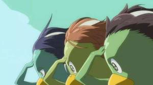 三人在胜利之后,就触发了“皿三昧”也变回了人类的身体,而各自的小秘密也因为身心合一的关系全部暴露在对方的面前,而回忆版“马赛克”就是