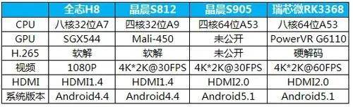 电视芯片横向对比中端电视提供的芯片,采用基于ARM Cortex-A53架构的64位四核处理器,Mali 450 MP4四核GPU图形芯片。