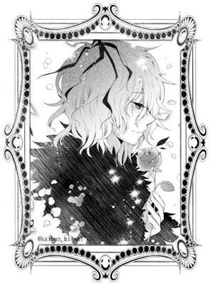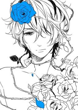 找一张黑白男生动漫图,不是头像,整体是黑白的,拿着蓝色的花
