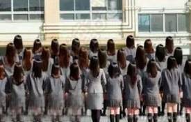 这是日本的一张学生毕业照,照片中的学生全部都是女生。其中的一个女生的丝袜颜色完全不同于其他女生。最恐怖的是这张毕业照全部都是背着的,也就是说完全看不到人的脸部。这也是网上流传十分广的日本学生恐怖毕业照。