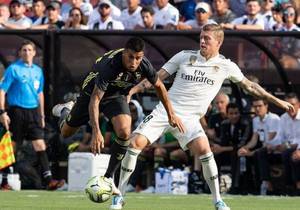 北京时间2018年8月5日6点,ICC国际冠军杯北美赛区再战一场,皇家马德里对阵尤文图斯。上半场第12分钟,尤文图斯坎塞洛传中造成卡瓦哈尔乌龙。第39分钟,贝尔远射破门将比分扳平。半场战罢,皇家马德里1-1尤文图斯。易边再战第47分钟,阿森西奥接维尼修斯横敲后推射破门,皇马2-1反超。第56分钟,阿森西奥捅射梅开二度,皇马3-1领先。最终,皇马3-1击败尤文图斯。尤文遭遇季前赛首败,2胜1负结束国际冠军杯赛。