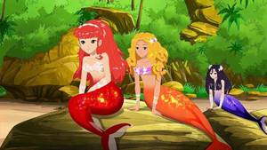 三个女孩看见咒语后感到非常害怕,她们正想离开时,不小心落入了古庙中央的一个泛着神奇涟漪的水池,这时,月光透过水面照射在三人的身上,于是,神奇的事情发生了,她们变成了美人鱼,同时她们每个人都获得了一种超能力,她们利用魔法保护海洋的故事。