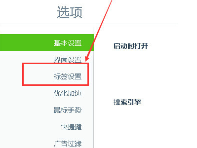 3、在跳出的设置界面中,点击左侧的标签设置选项。