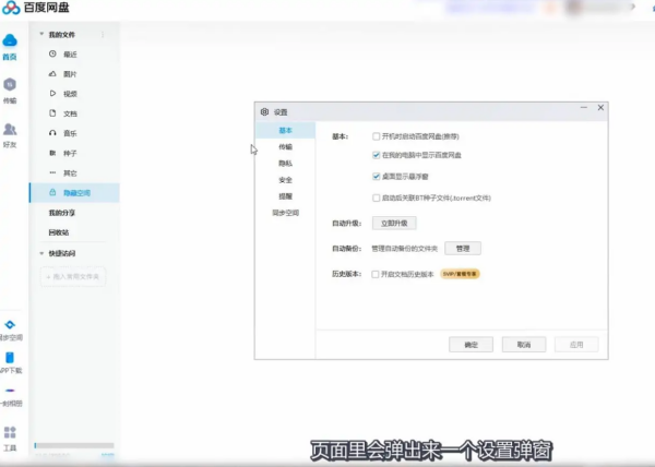 进入电脑端百度网盘,点击左上方的设置图标,在弹窗的来的方框中点击设置选项。