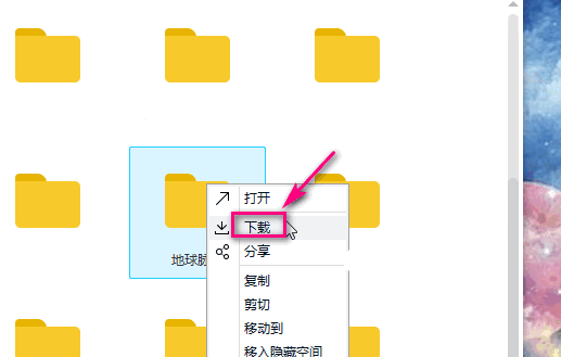 3、登陆百度云之后,选择一个要下载的文件夹,右键单击选择下载。