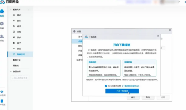在弹窗里勾选已阅读并同意下载提速功能协议,点击页面里的开启下载提速按钮即可。
