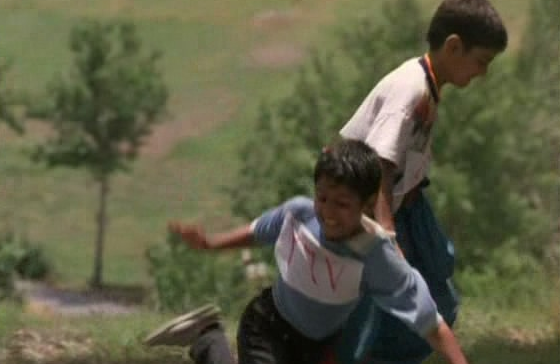 这种温情反映在导演以蹲下来的姿势在平视一个孩子的眼睛,倾听他的声音,所以阿里和妹妹的语言是幼稚的,思维是幼稚的,行为也是幼稚的,但又是最自然真实的。
