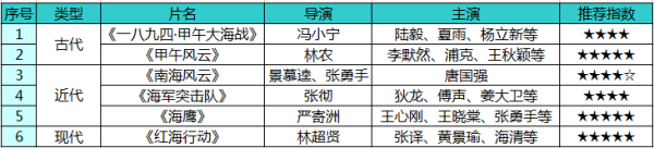 中国海军的电影类型按时间主要分为古代,近代和现代三个阶段,我根据这三个阶段整理出了几部值得推荐的: