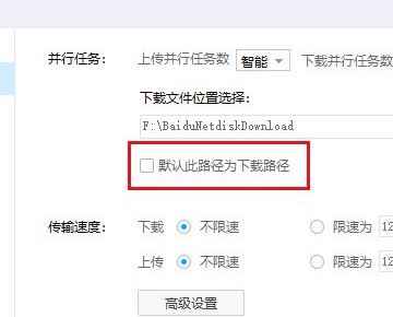 4、接着在打开的右边栏中,勾选默认此路径为下载路径。