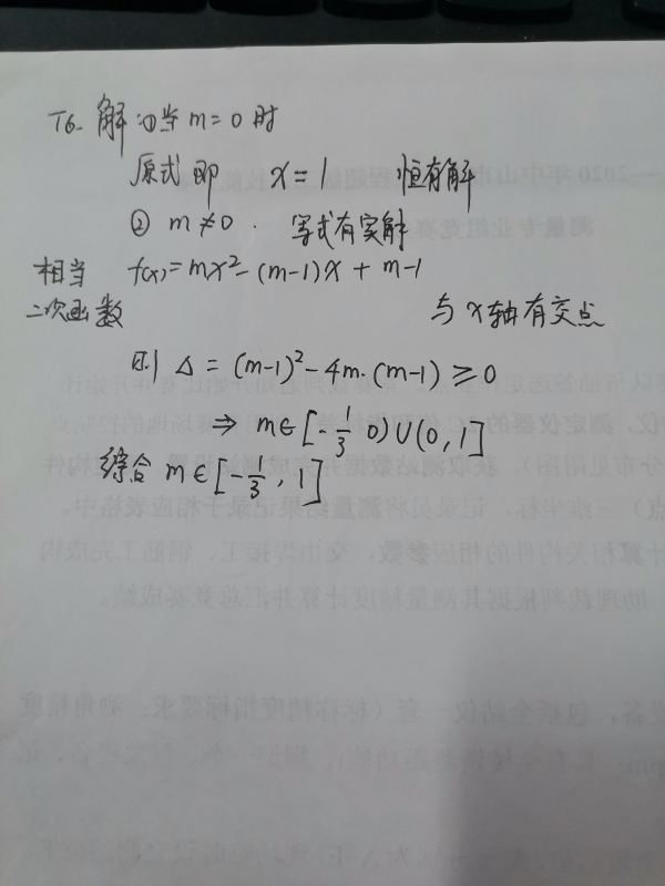 T6,就是先讨论m的取值,然后划归成一次函数或者二次函数来解