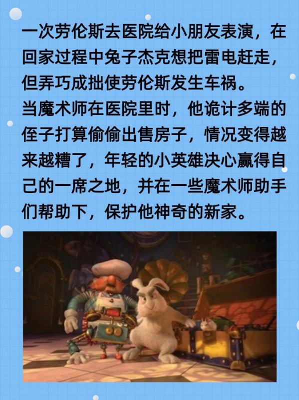 当魔术师在医院里时,他诡计多端的侄子打算偷偷出售房子,情况变得越来越糟了,年轻的小英雄决心赢得自己的一席之地,并在一些魔术师助手们帮助下,保护他神奇的新家。