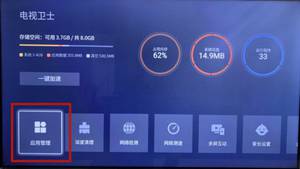 2、打开电视卫视后,在如下图界面里选择打开应用管理