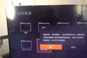 选择软件后方的恢复。点击安装。这里就是利用电视本身的恢复功能安装软件,安全可靠,操作简单,关键是不需要ROOT权限之类的,可以算是绿色环保啦。恢复完成返回主菜单即可发现已经安装好的各种软件。