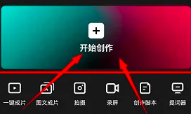 2、然后我们需要找到图中的开始创作,点击一下进行创作和剪辑。