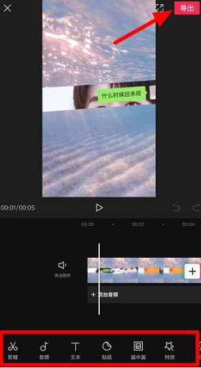 4、添加视频之后找到右上角的导出,点击一下,并进入开始编辑。