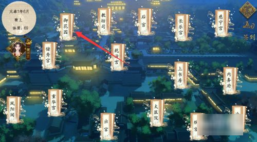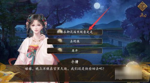 1、在晚上的时候,选择前往【御花园】。