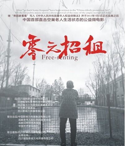 45分钟公益微电影 《零元招租》改编自2012年一则备受关注的新闻。影片自2013年12月28日即“常回家看看”写入《老年法》一周年在成都感动首映以来,已先后在深圳微电影节、广州国际微电影大赛、长春国际微电影节、杭州国际微电影展等数众多微电影节赛斩获金奖、银奖、最佳影片奖 、最佳导演奖、最佳编剧奖、最佳原创音乐奖、公益影响力大奖等32项殊荣,是国内少有的微电影单片获奖大户。该片由资深传媒策划人田万良身兼策划、编剧、导演、片尾曲演唱等10余项职务于一身,筹拍历时14个月,剧本易稿37次,特邀中国地产百杰人物郑全义担纲总顾问,由八旬成都空巢老人、全国知名人体裸模王肃中,知名演员林浩及宋娟、方鸿、廖语嫣等逾百位爱心演员联袂出演,中央电视台、北京卫视、湖南经视、陕西卫视、广西电视台、重庆卫视、四川电视台等超过100家媒体热情关注。影片辐射全国观众达3亿人次,先后入选广东、安徽、四川等诸多省市初高中校园“爱之链电影课堂”。