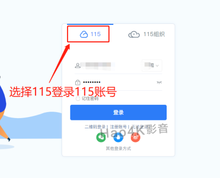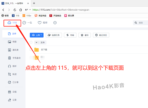 4:输入账号登录进去后,我们会看到下面这个页面,点击左上角“115”