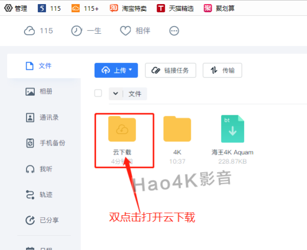 11:离线完成的电影都在云下载里面,双击点击打开云下载