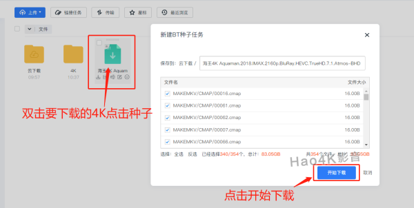 我们以海王4K蓝光原盘为例:选择要选择的4K电影种子,选择下载。