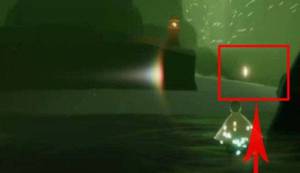 2、玩家蹭云飞到灯塔上面可找到第一个小金人。