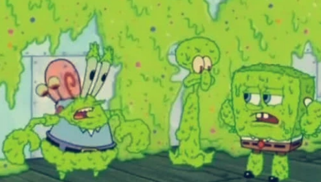 在这一集中海绵宝宝因为去了海面一趟后,回来它就染上了真菌病全身都长满了绿颜色的真菌看上去有一看恐怖但是又充满了喜感,但是让人没有想到的是这种东西竟然会传染,它在回到海底世界后不久就感人了所有的海底生物,让海底所有的人都和海绵宝宝一样绿了起来。