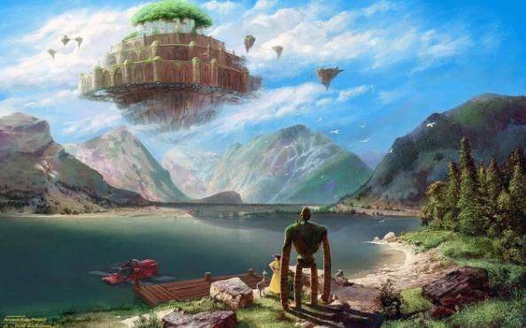 影片中所描绘的古老帝国拉普达是一座漂浮在空中,拥有着奇幻景象、超前科技和无数财富的巨大机器岛。除了身为拉普达王族后裔的希达和想要为父亲证明清白的巴鲁之外,大家之所以费尽心思的去找寻它的踪迹,也无非就是被那里的财富所吸引。