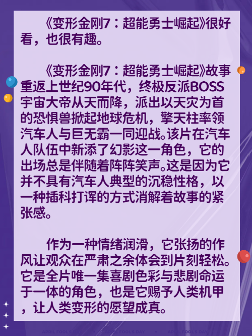 《变形金刚7:超能勇士崛起》很好看,也很有趣。