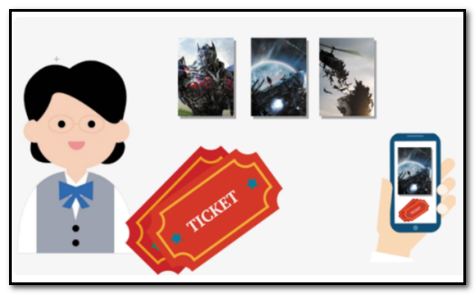 2、取票,问在网上订票要去取票机处取票,而在电道影院柜台前买票则直接获得。